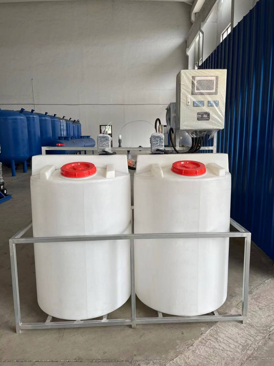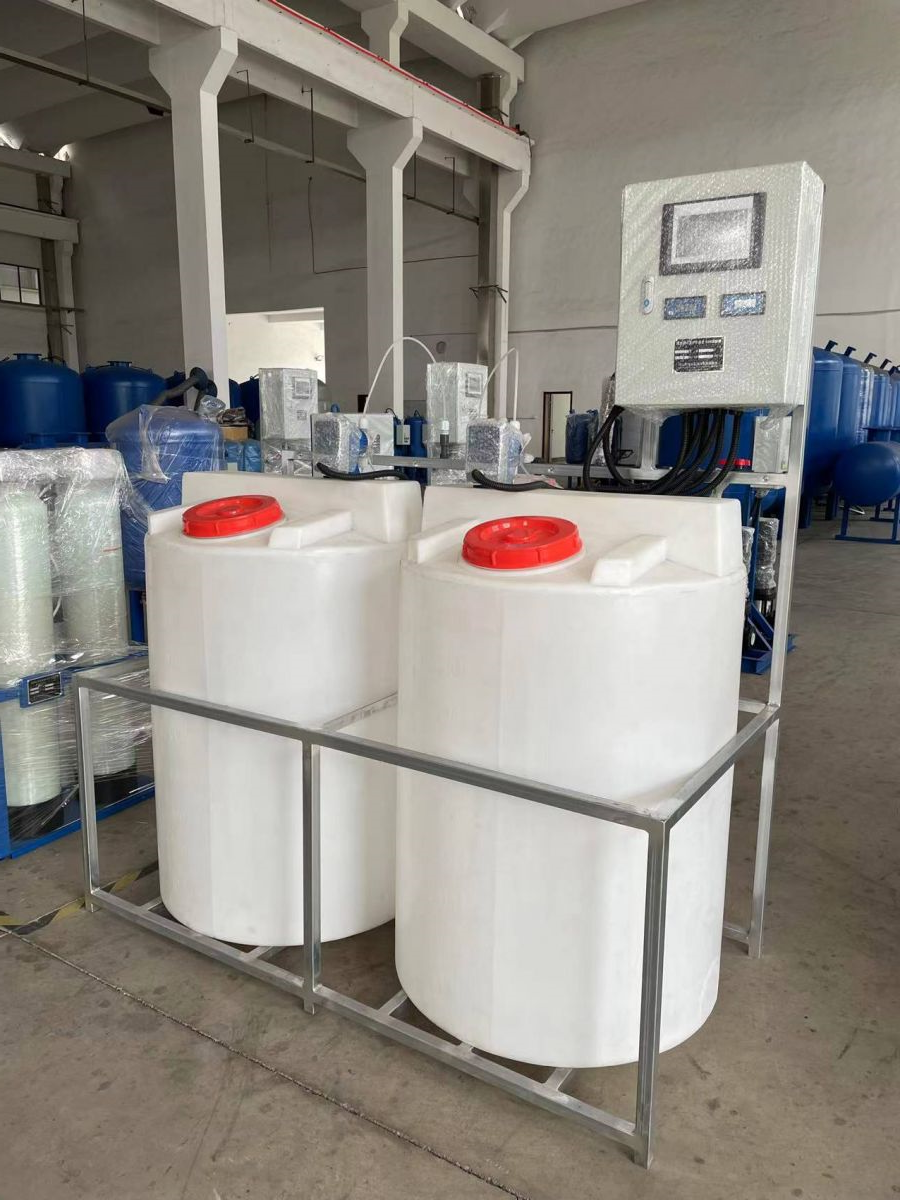 全自动加药装置采用时间程序控制,此控制方式无需仪表的支持,首先根据系统的运转需要设定自动加药的周期、加药量、加药时间和加药频率。在以后的系统运转过程中,到加药周期,计量泵自动打开加药,加到规定的时间计量泵关闭;到排污周期,计量泵停止加药,排到规定的时间后,计量泵继续开启,补充排污损失掉的药剂,把系统的含药量维持在正常的水平、加到规定的时间计量泵关闭。
