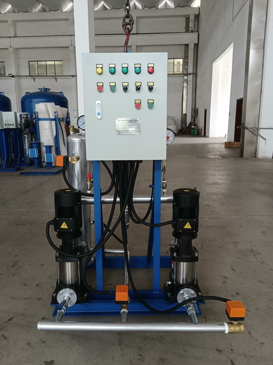 定压补水机组由囊式压力罐、水泵、控制箱、底架、压力感应装置、管道阀门等组合而成,是一种兼有升压、调节、储水、供水等多种功能的常用供水设备。定压补水机组利用气压罐的可调节能力,可自动调节用户水量的变化,当用水量减少或不用水时,可较长时间不启动水泵,达到节能目的。与水塔、高位水箱相比可节省投资约40%-60%。该设备结构紧凑,与其他传统的供水装置相比减少了占地面积,节省了土地资源。本设备全自动运行,无需专人管理,工作可靠。