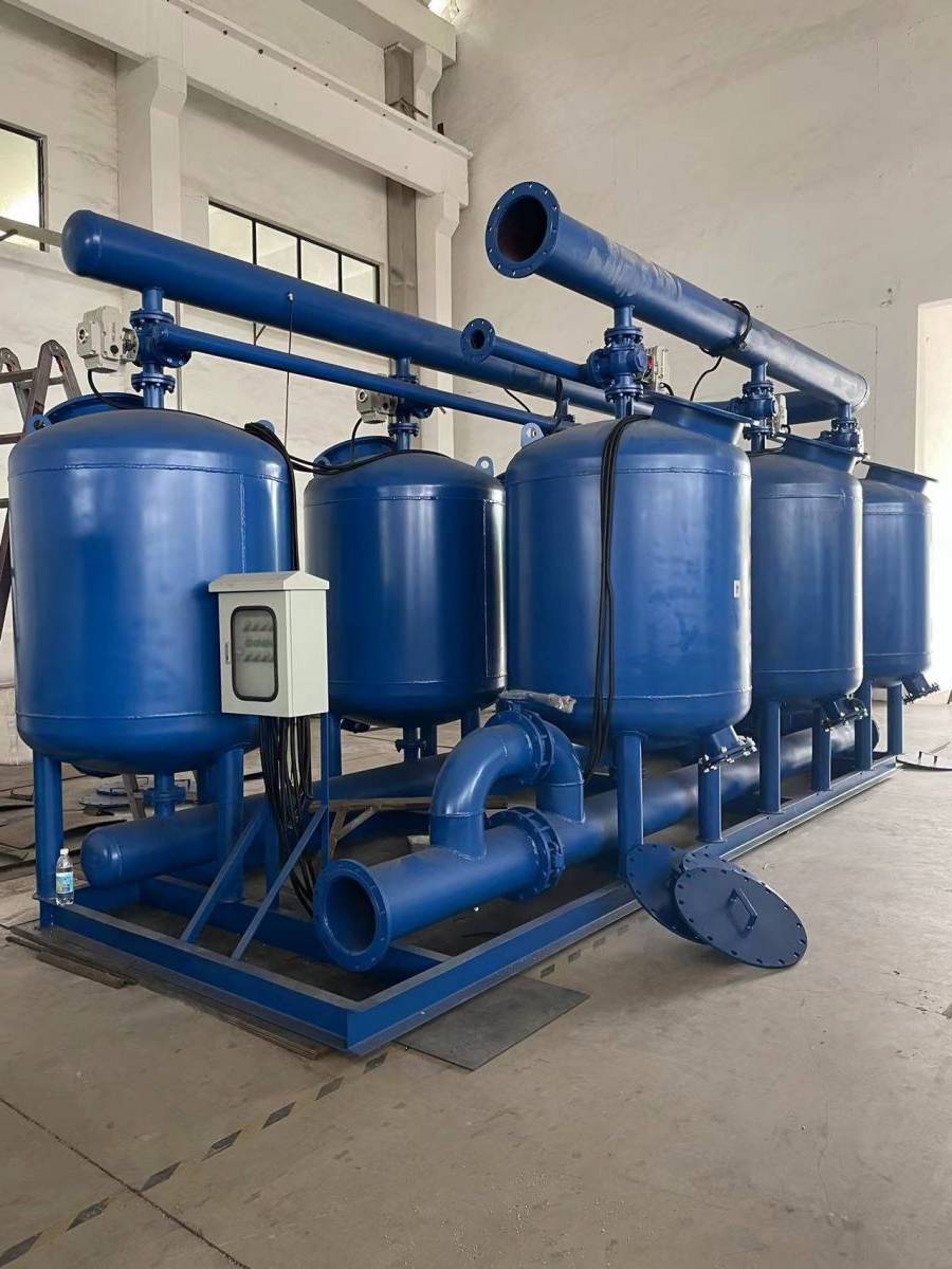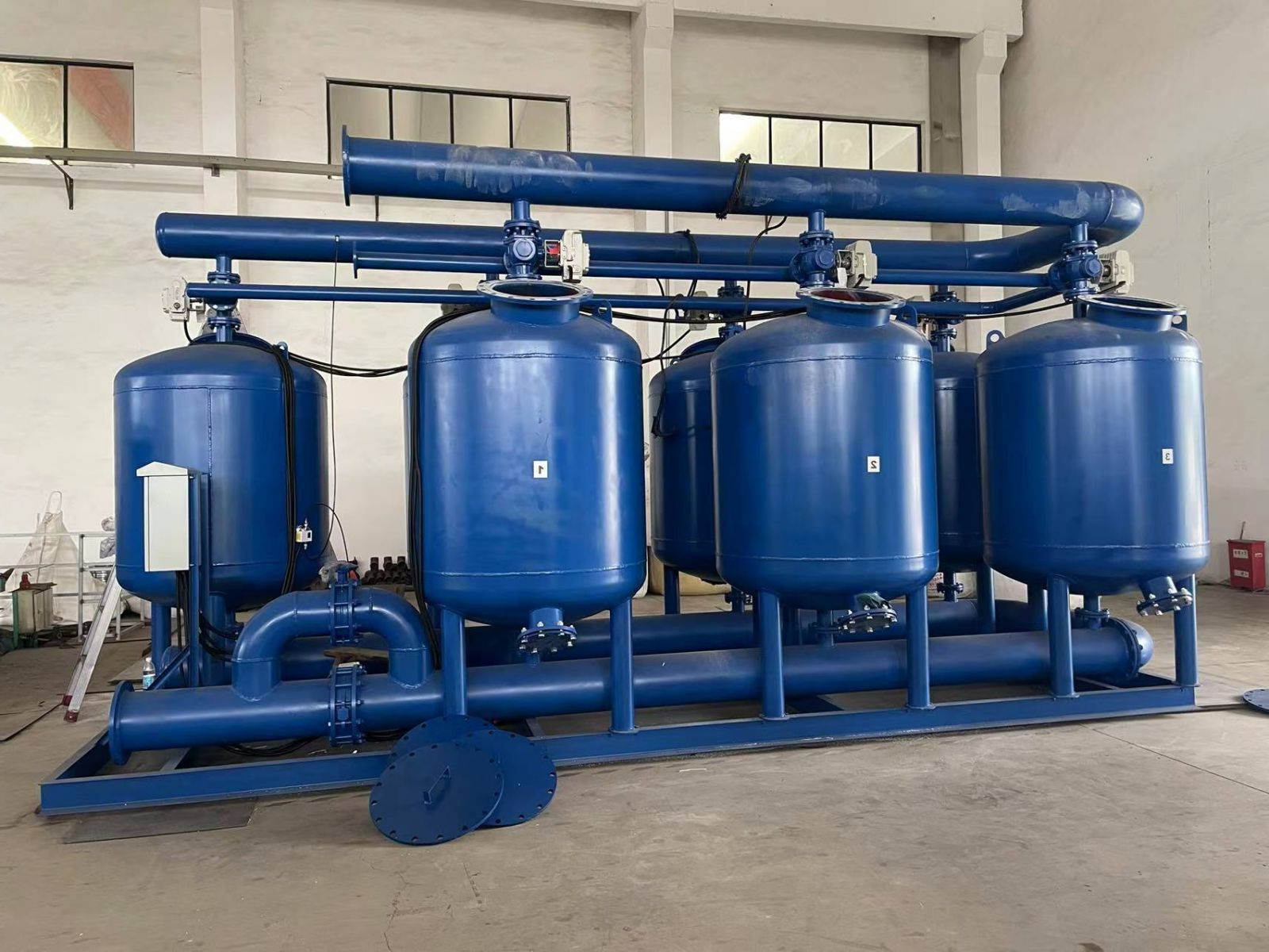 石英砂过滤器是一种过滤器滤料采用石英砂作为填料,用它做填料有利于去除水中杂质,其还有过滤阻力小,比表面积大,耐酸碱性强,抗污染性好等优点。石英砂过滤器的独特优点还在于通过优化滤料和过滤器的设计,实现了过滤器的自适应运行。滤料对原水浓度,操作系统,预处理工艺等具有很强的适应性。即在过滤时,滤床自动形成上疏下密的状态,有利于在各种条件下,保证出水的水质,最终达到降低水浊度,净化水质效果的一种高效过滤设备。反洗时,滤料充分散开,清洗效果好,石英砂过滤器可有效去除水中悬浮物,并对水中的胶体、铁、有机物、锰、细菌、病毒等污染物有明显的去除作用,并具有过滤速度快,过滤精度高,截污容量大等优点。