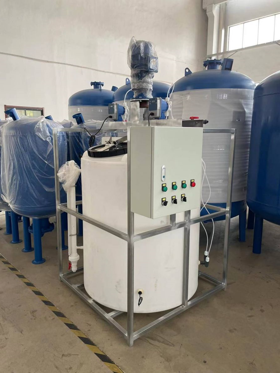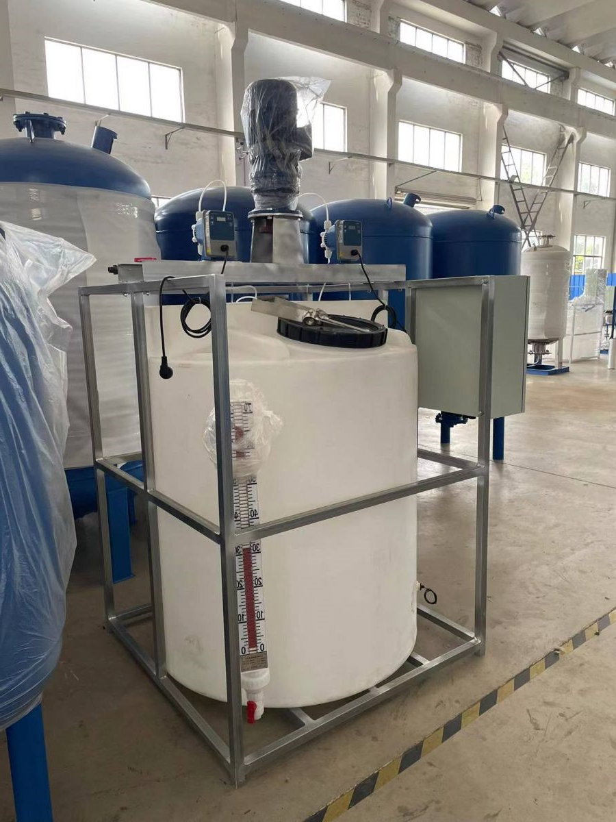 全自动加药装置采用时间程序控制,此控制方式无需仪表的支持,首先根据系统的运转需要设定自动加药的周期、加药量、加药时间和加药频率。在以后的系统运转过程中,到加药周期,计量泵自动打开加药,加到规定的时间计量泵关闭;到排污周期,计量泵停止加药,排到规定的时间后,计量泵继续开启,补充排污损失掉的药剂,把系统的含药量维持在正常的水平、加到规定的时间计量泵关闭。