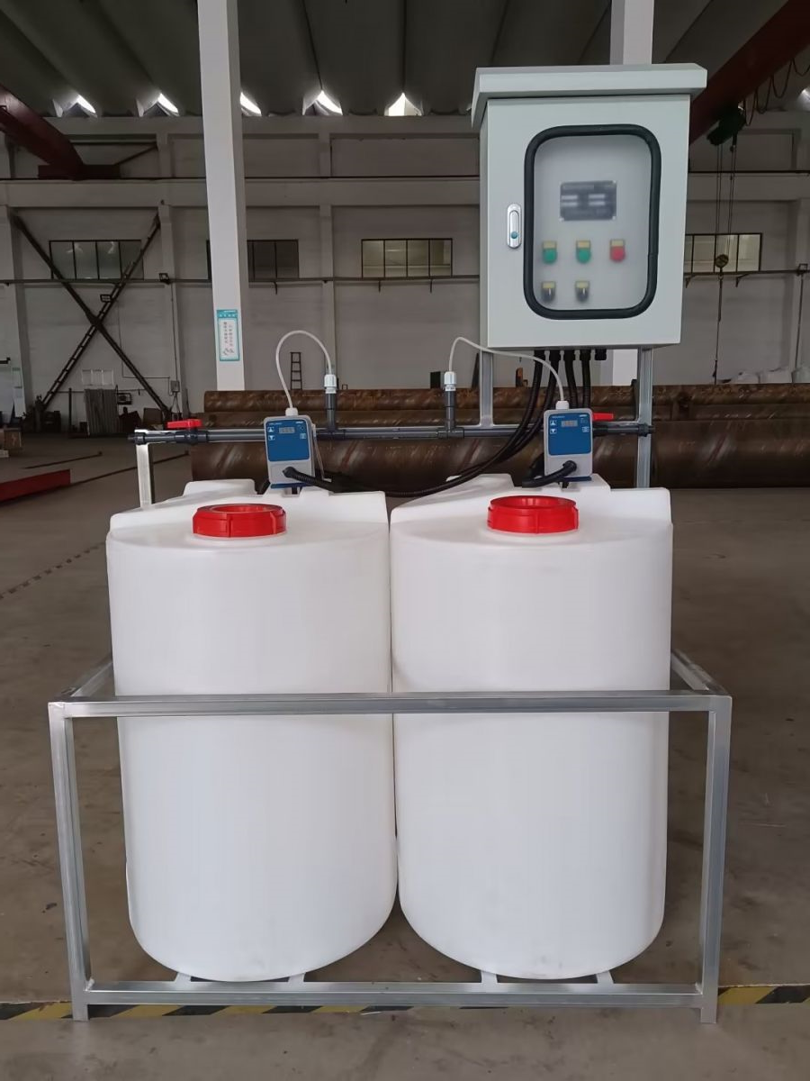 全自动加药装置采用时间程序控制,此控制方式无需仪表的支持,首先根据系统的运转需要设定自动加药的周期、加药量、加药时间和加药频率。在以后的系统运转过程中,到加药周期,计量泵自动打开加药,加到规定的时间计量泵关闭;到排污周期,计量泵停止加药,排到规定的时间后,计量泵继续开启,补充排污损失掉的药剂,把系统的含药量维持在正常的水平、加到规定的时间计量泵关闭。