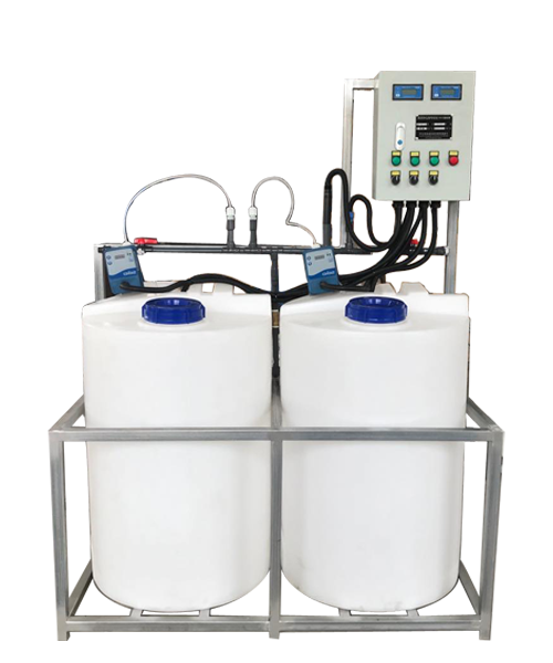 自动加药装置是一种以时间程序控制,可自由设定自动加药的周期,加药量,加药时间和加药频率。以计量泵为主,装配加药箱、安全阀、止回阀、过滤器、缓冲器、阀门、底座、控制系统等。