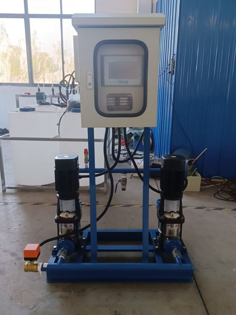 全自动加药装置采用时间程序控制,此控制方式无需仪表的支持,首先根据系统的运转需要设定自动加药的周期、加药量、加药时间和加药频率。在以后的系统运转过程中,到加药周期,计量泵自动打开加药,加到规定的时间计量泵关闭;到排污周期,计量泵停止加药,排到规定的时间后,计量泵继续开启,补充排污损失掉的药剂,把系统的含药量维持在正常的水平、加到规定的时间计量泵关闭。
