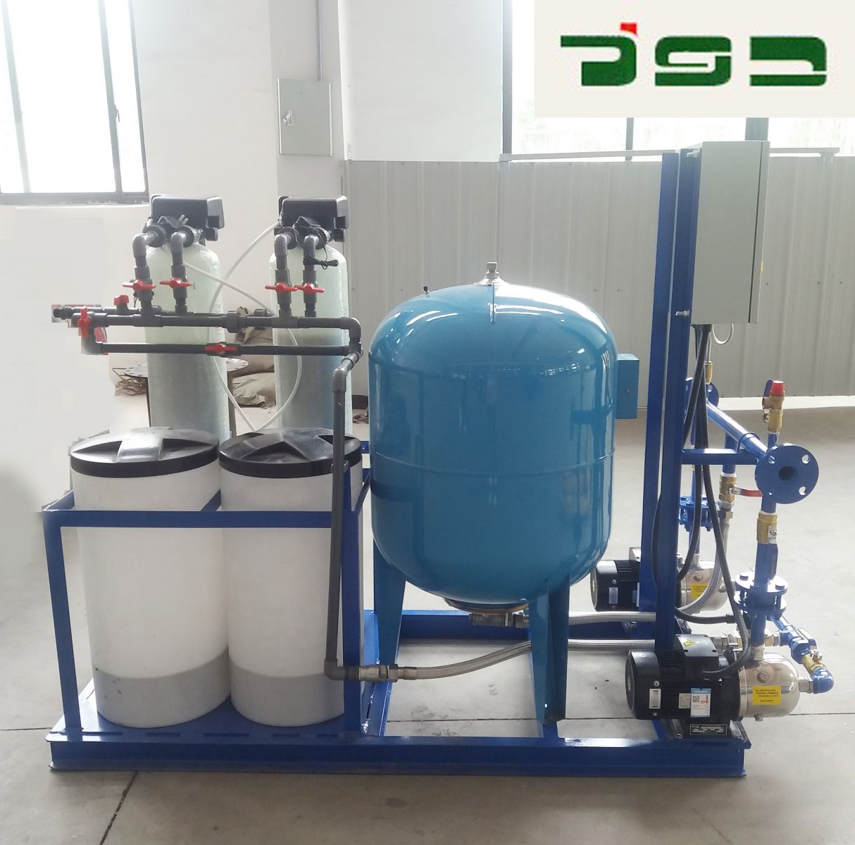 体系定压值:Pd≥(H+一)+一/二△P 式中:Pd定压值(m) H体系z高点到本定压装配之间高差(m) △P定压值Pd允许的颠簸值(m)集成水保机组装备.
